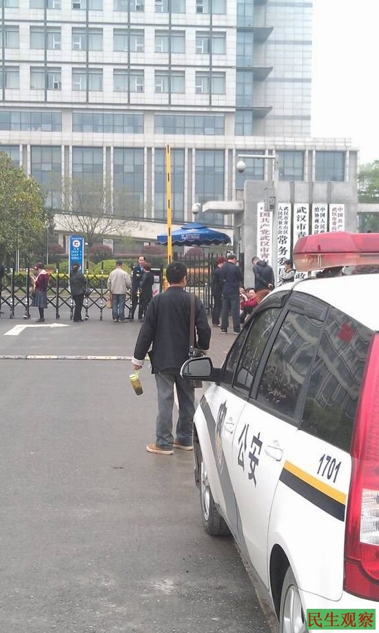 民生观察工作室2014-4-18消息:今天上午,武汉部分维权人士在寻找被失踪公民张世清的途中(详见:《公民张世清建三江失踪陈建雄述建三江蒙难记》http://www.aaa.aetdhfjgk.cf/a/lanmu4/2014/0416/9750.html),看到约十多名中老年人围在武汉市青山区人大政协门前静坐维权。期间,虽遭遇了警察的“劝离”与驱赶,但仍有部分老人坚持静坐在政府大门前抗议,要求解决问题。