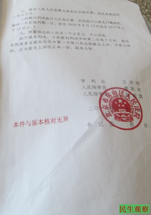民生观察工作室2014-5-5消息:本工作室4月25日曾发布了北京饶乐府选举门获刑村民出狱的消息(北京饶乐府选举门七位获刑村民全部获释http://www.aaa.aetdhfjgk.cf/a/lanmu4/2014/0425/9818.html)。