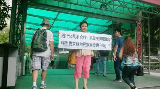 此外,据唐妻消息称,今天广州美领馆经济政治部主任孙良玉女士,也到广州白云看守所来关注唐荆陵的案子,并且亦有部分网友也赶来声援唐荆陵。