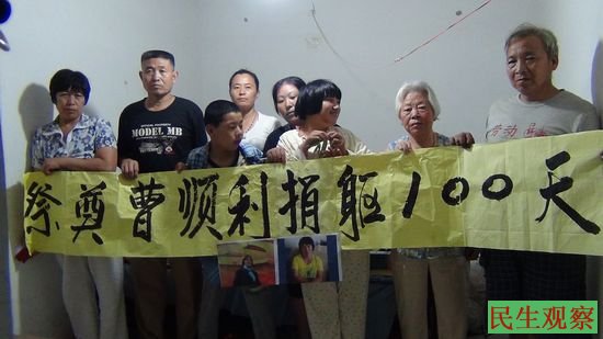 民生观察工作室2014-6-23消息:著名的人权活动人士曹顺利,至今日已经“病故”100天了,为了悼念曹顺利女士去世100天,安抚自己愧疚的心,告慰曹顺利女士的在天之灵,访民们找出了曹顺利女士的照片,写了条幅,挤在一起合影留念,追忆她为中国人权所作出的贡献。
