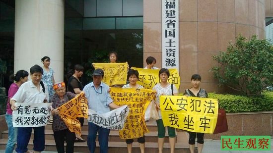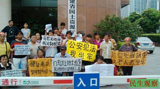 大量访民再到福建省国土资源厅举牌抗议