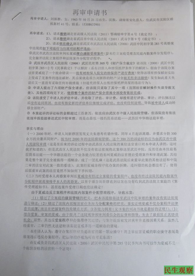 武汉刘新群离婚案诉法院滥权 法院称是“司法行为失当”