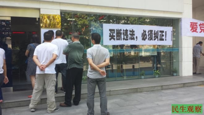 “断友”们来到银行后,要求与行长对话并商讨解决方案,但银行工作人员却说行长们都在开会,没有时间接待维权者。为此,“断友”们开始拉出印有“爱党爱国,拥护中央!”、“我为建行献青春,建行毁我后半生!”的大型横幅,表达抗议。不久,银行的一位办公室主任出来接待了大家,但是,几经商议也未有任何结果。
