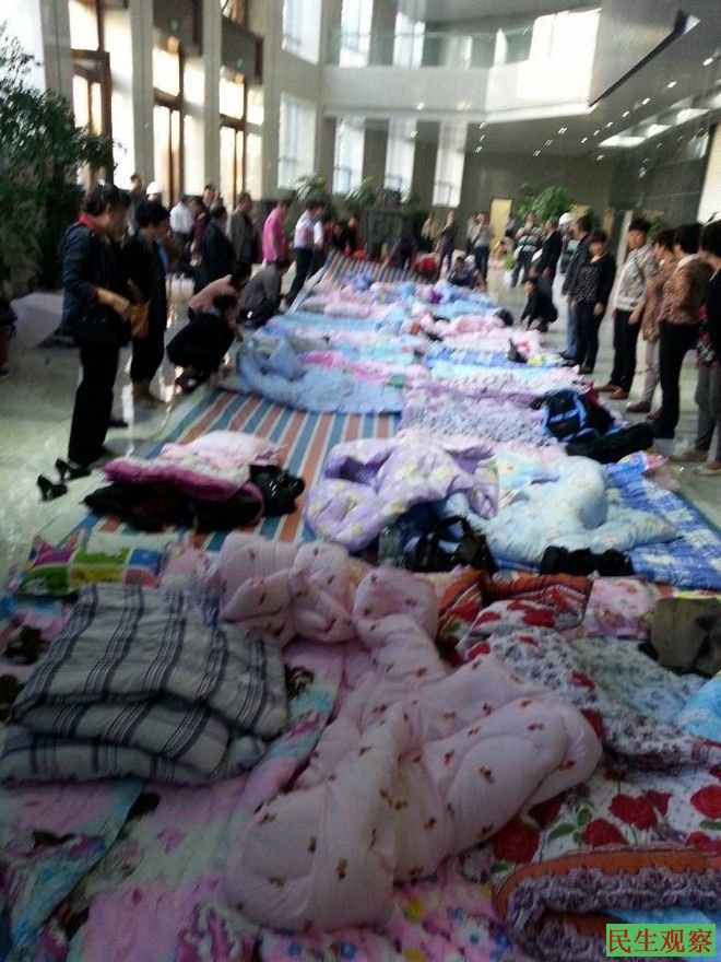 另外,云南省各地农行买断下岗的断友们连续三天到省农行上访请愿,到今天仍无结果。今天晚上,80多名断友就在省农行大厅内搭地铺睡觉。