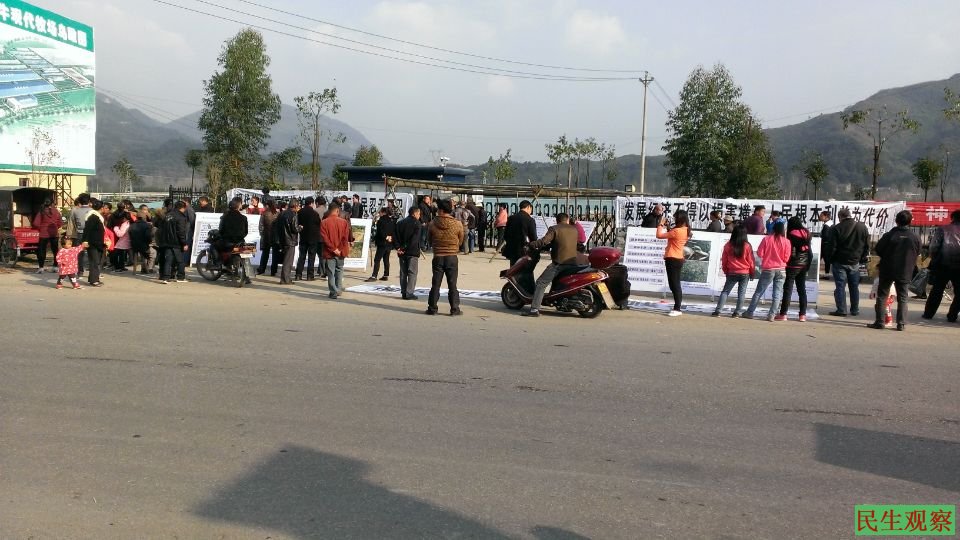 民生观察工作室2014年11月17日消息:从昨天开始,湖北省咸宁市通山县九宫山镇三百多村民打着各种标语,围堵当地的一家名为现代牧业通山公司的企业。到今天,围堵抗议行动还在继续,但政府到现在仍没什么说法,只是一味“劝离”。
