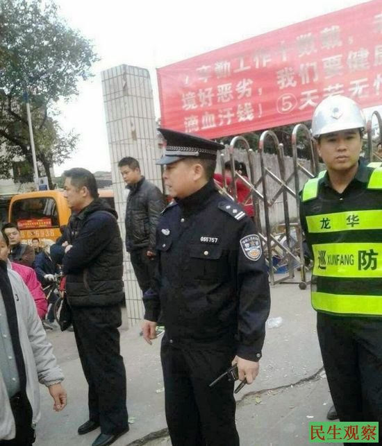 民生观察工作室2014-12-18消息:近期,位于深圳观澜的“庆盛制衣厂”,因众多员工与企业产生劳资纠纷而爆发罢工事件。今天上午,深圳警方派出了约400百多名警察来到厂区进行镇压。