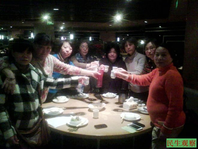 我们近十人(毛恒凤、石萍、俞忠欢、徐佩玲、郑佩佩、李玉芳、于春香)联系到被放出的孙洪琴女士后于昨天晚上为她接风洗尘。请求民生观察再声援一下英勇无畏的孙洪琴女士。