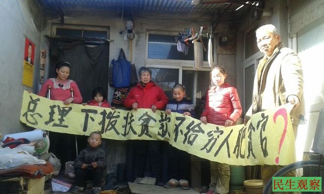 自他们在新闻里听到李克强总理的话后就盼星星盼月亮的等,并四处投书反映自家情况,结果等到过年了也没人搭理他们,他们左右思量觉得又上当了,随打出“总理下拨扶贫款,不给穷人肥贪官”的横幅。