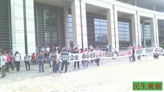 此次镇政府上访无果后,工人们今日才徒步来到市政府上访。市政府工作人员要求推荐代表表达诉求,由于之前被恐吓,工人一度不愿推荐代表,僵持一小时后,五名工人代表进去反应诉求。