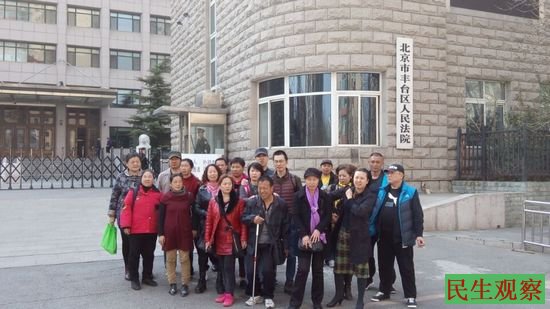 民生观察工作室2015日消息:黑龙江七台河市访民李艳诉马家楼报警不出警案,今日在北京丰台区人民法院公开开庭审理,各界维权人士近30人参与了围观。