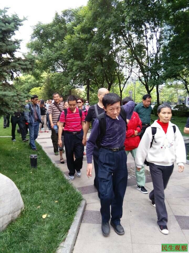 今天的维权断友来自全国各地,有四川、重庆、辽宁、湖北、河北、河南、黑龙江、内蒙、甘肃等等许多个省市区,拉到久敬庄的已经有一、二百人了,大部分人没有进去,还在银监会周围。
