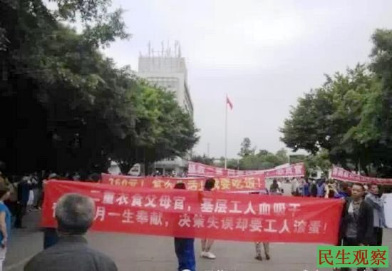 二重 工人“百里风瑾轩” 说:领导贪污腐败,决策失误导致国企连年亏损达数百亿,却要普通工人来承担这一切,好多工作了几十年的工人都要被裁回家,而且只拿的到360元一个月,连最基本的生活都保障不了,今日全体员工罢工。”二重工人“陕西咸阳股友” 说:我在二重工作了将近三十年,感受之深可以说感慨万分,如果要用被剥削二字来形容,真是一点都不过分,二重的工人多年来一直就是德阳三大厂里收入最低的,而中层干部却是三大厂中最好捞钱的,即便在二重最近十年高速发展的时代里,绝大多数的工人始终拿着刚刚过千的月收入,盼星星、盼月亮的年终奖还要再被各级管理干部截留,十年啊!物价在飞涨,可我们工人的血汗钱为什么就不涨?曾经有几年,单位喊多认购签单年收入,说可以增加公积金,我们贷款买房的工人老老实实的多认购了一、两万,事后才知道没有一个领导干部参加认购,于是大家传言,说是替中干摸黑帐,我们这些工人身处最底层,哪里知道企业这样做是什么目的啊,况且最后一算,我们并没有得到什么实惠,完全就是一笔糊涂账。这种全厂性的认购,哪个单位都有,不是我在这里说假话吧。有时候我就在想,读书的时候,课本上讲的:要相信、相信组织、相信政府。而现在我们工人还能相信谁,作为我们的企业各级领导,子女出国读书、自己使劲贪污,这哪还像共产的干部,也许有人会问我:你有依据吗?说实话,我没有他们贪污的具体证据,因为我接触不到,但广大职工的眼睛是雪亮的,他们的合法收入能支撑的起那高额的消费吗?他们敢公示自己的财产吗?所以啊,我觉得二重最近的十多年不仅仅是投资失败的原因,更多的是分配极其不公,以及对广大普通职工的冷漠,再大的企业,国家投再多的资,也一定会被他们吃垮、搞垮。蛀虫啊!