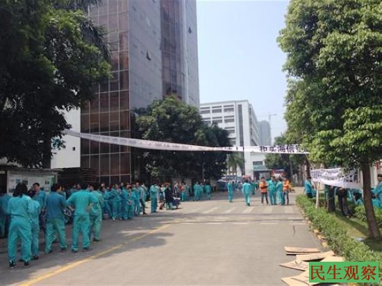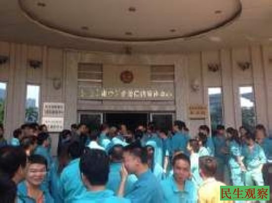 2015年6月27日,再有大批海信科龙员工在工厂区和马路上集结,垒起人墙,打出巨幅抗议标语。