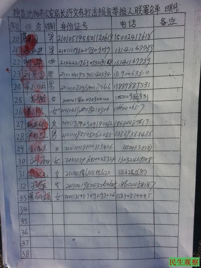 三十三位沈阳公民最高检控告沈阳市公安局长许文有