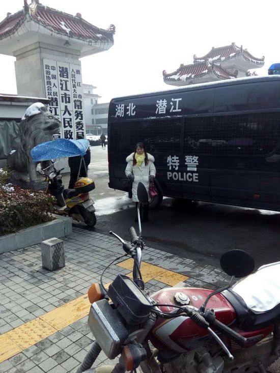 潜江维权公民伍立娟说,任何讨薪农民工的背后都是艰难心酸与泪水,任何欠薪老板后面都是强大的政府与公安在支持,农民工讨薪激动堵门属于违法,公安打人叫执法,政府帮老板拖欠工资属于资金不到位, 当我看到讨薪农民工被几个警察抓打拖推,几个警察拖一个农民工到特警大车上时我真的哭了,我也给信访局局长王舒伟打电话,请他出于人道主义立即释放被抓民工。