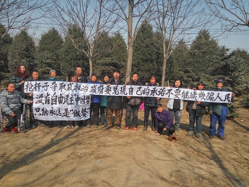 访民举牌要求代表访民参加