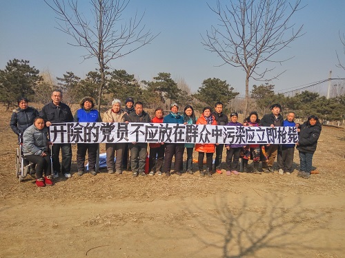 参加这次抗议活动的有,黑龙江:王清臣、广东东莞:冉崇碧、电话:17783440481.河南省:王金兰、重庆:刘持玉、李家坤、徐珍、徐帮珍、邓光英、福建:吴秀妹、彭国财、刘养兰、河北:谢玉花、杨启如、张爱民、辽宁:张振敏、赵振甲、吉林:闫春凤、四川省:何艾岺、文仁贵、上海:程玉兰等人。