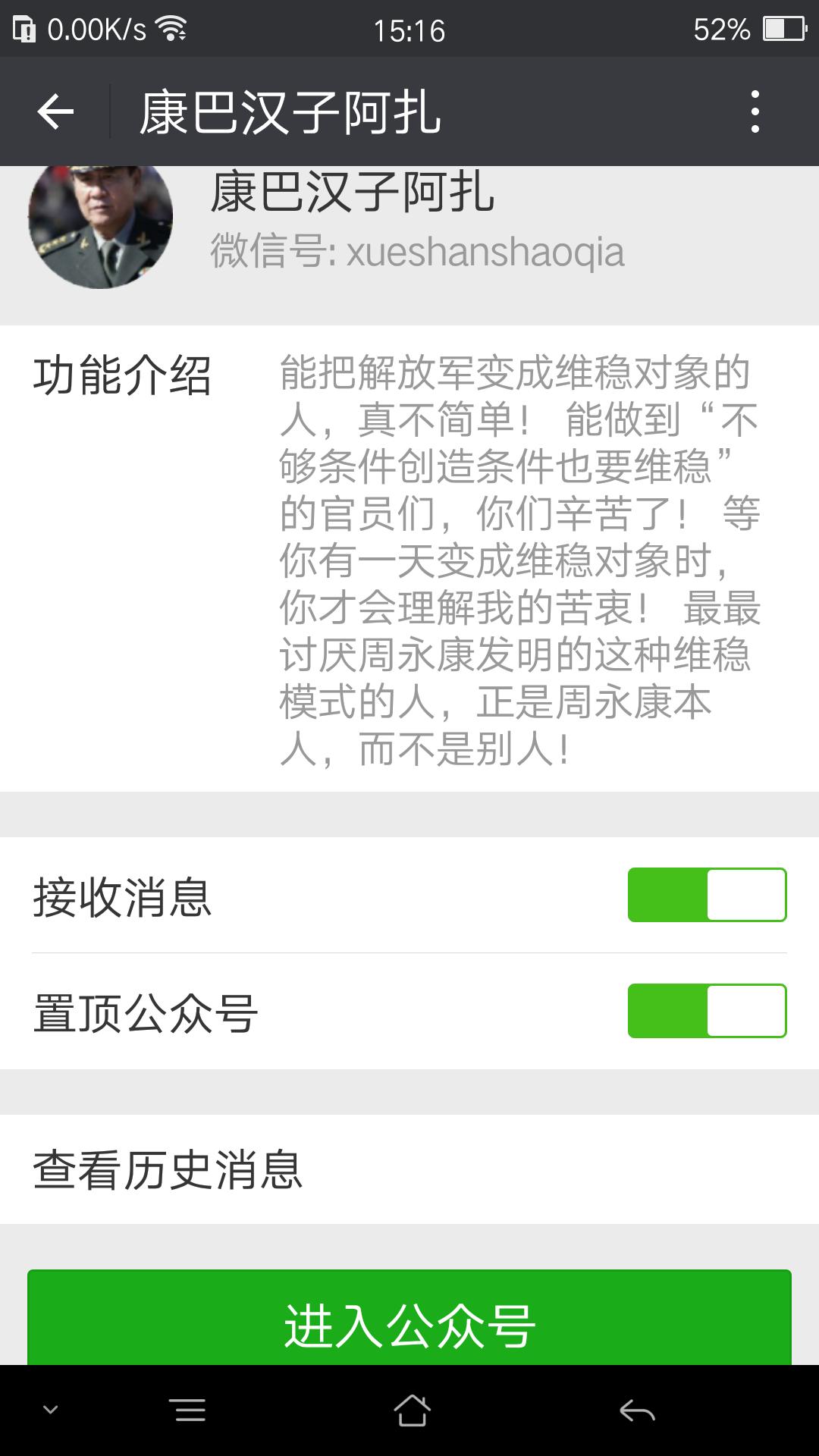 今天本网志愿者再次查看复转军人的微信公众号@康巴汉子阿扎发现,昨天关于复转军人军委请愿的报道已被删除,理由是涉嫌违反法律法规和政策。
