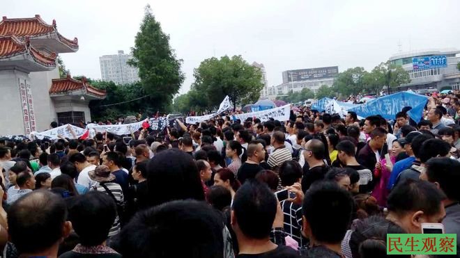 民生观察工作室2016/6/27消息:继昨天湖北省仙桃市全城爆发大规模反垃圾焚烧发电厂游行,今天上午湖北省潜江市同样爆发大规模反污染游行。