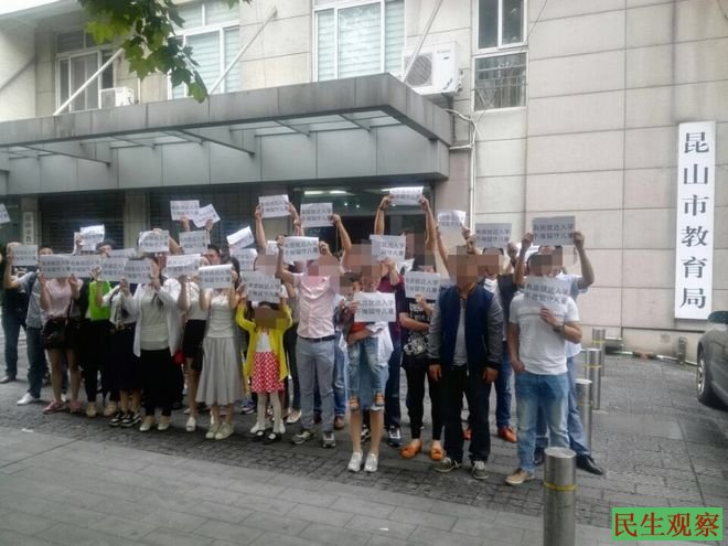 民生观察工作室2016/7/5消息:今天上午,江苏昆山多位学生家长联系本工作室,介绍了他(她)们小孩今秋开学很可能无学可上的情况,而这样的小孩有五千多名。