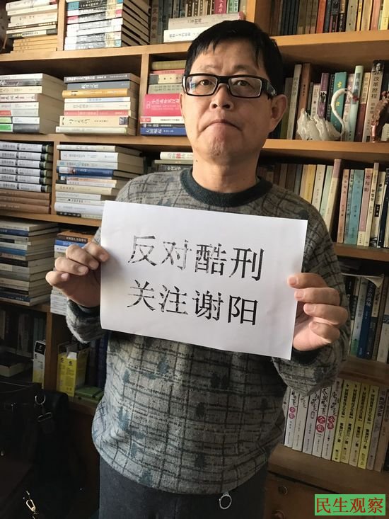 网友发起一人一照”反对酷刑支持谢阳”活动!