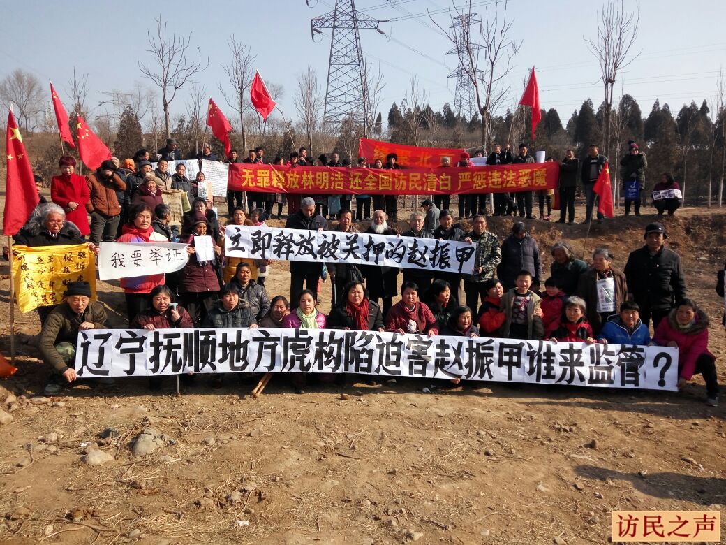 辽宁赵振甲发起反截访活动被拘 访民打横幅声援