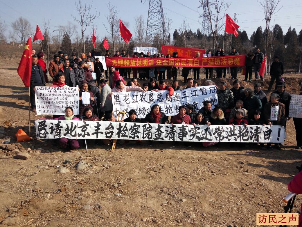 [访民之声2017/2/18消息] 今天,数十在京访民聚集在北京市丰台区吕村,打横幅要求查清事实,落实中央精神,无罪释放常洪艳、赵振甲。