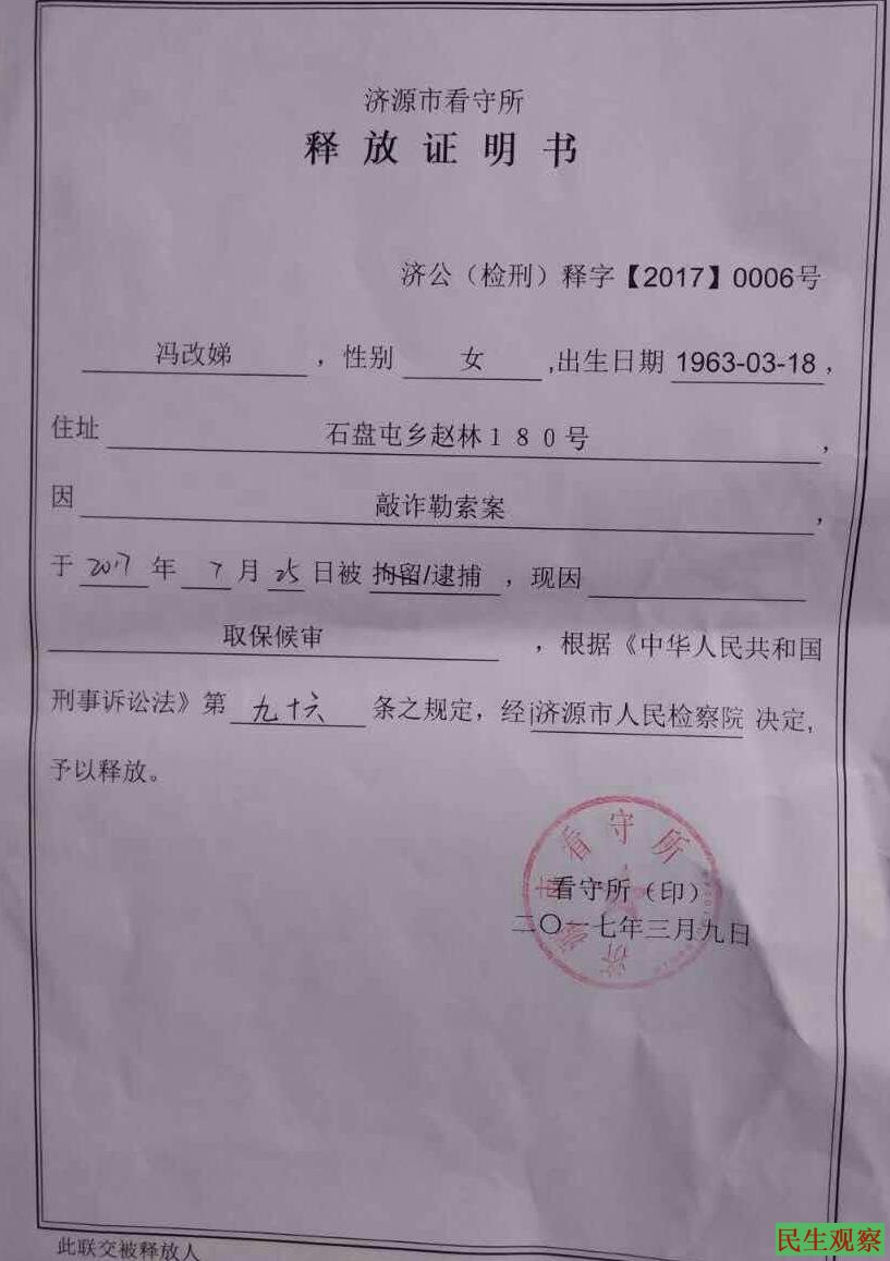 河南冯改娣敲诈政府案发回重审后将于5月17号开庭_民生观察 关注底层民众命运