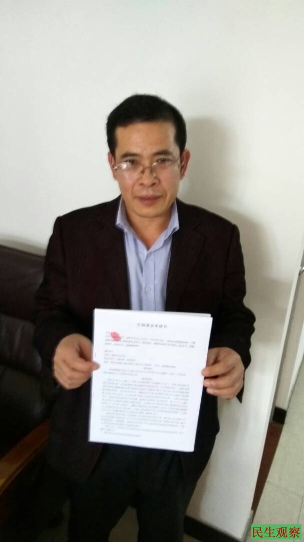 【民生观察2017年12月3日消息】本网获悉,明天“司法日”,福建省福清维权公民何宗旺期期待通过抗争能够得到公正。今天(2017年12月3日)何宗旺为抗议福清黑司法,针对福清市公安局在中共召开19大期间,借口维稳乱作为,将他违法行政拘留15天一案,向福清市政府申请行政复议。