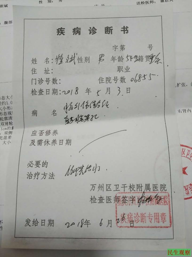 【民生观察2018年6月29日消息】本网获悉,重庆万州区公民崔斌,于今年4月26日在家附近遭到黑社会人员暴力毒打,报警后警察一直没有处理打人凶手,凶手也不赔偿医疗费用,昨天,崔斌再次前往万州区龙都派出所要求做伤情鉴定遭到警方推诿。