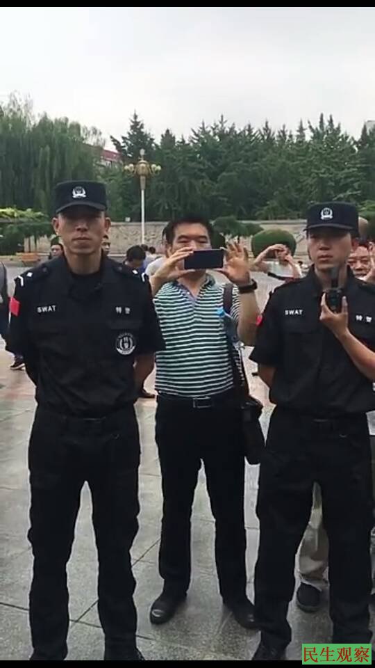 现场退役军人发出视频呼吁:“2018年7月12号,河北省,我们是退役老兵在这里维权,现在都在西清公园南头,都在这里列队成功,没赶过来的战友们继续往这里赶。边上这是河北的特警们,看看这他们这是怎么对待我们这些老兵的,一个个都看清这些面孔…他们都在这里围着我们这些退役的老兵……照相的这位估计是位领导,另外还有别的领导,外围还有一些截访的现在都在这里了。现在河北省的没来的战友赶紧都要往这里赶了,速度点……”
