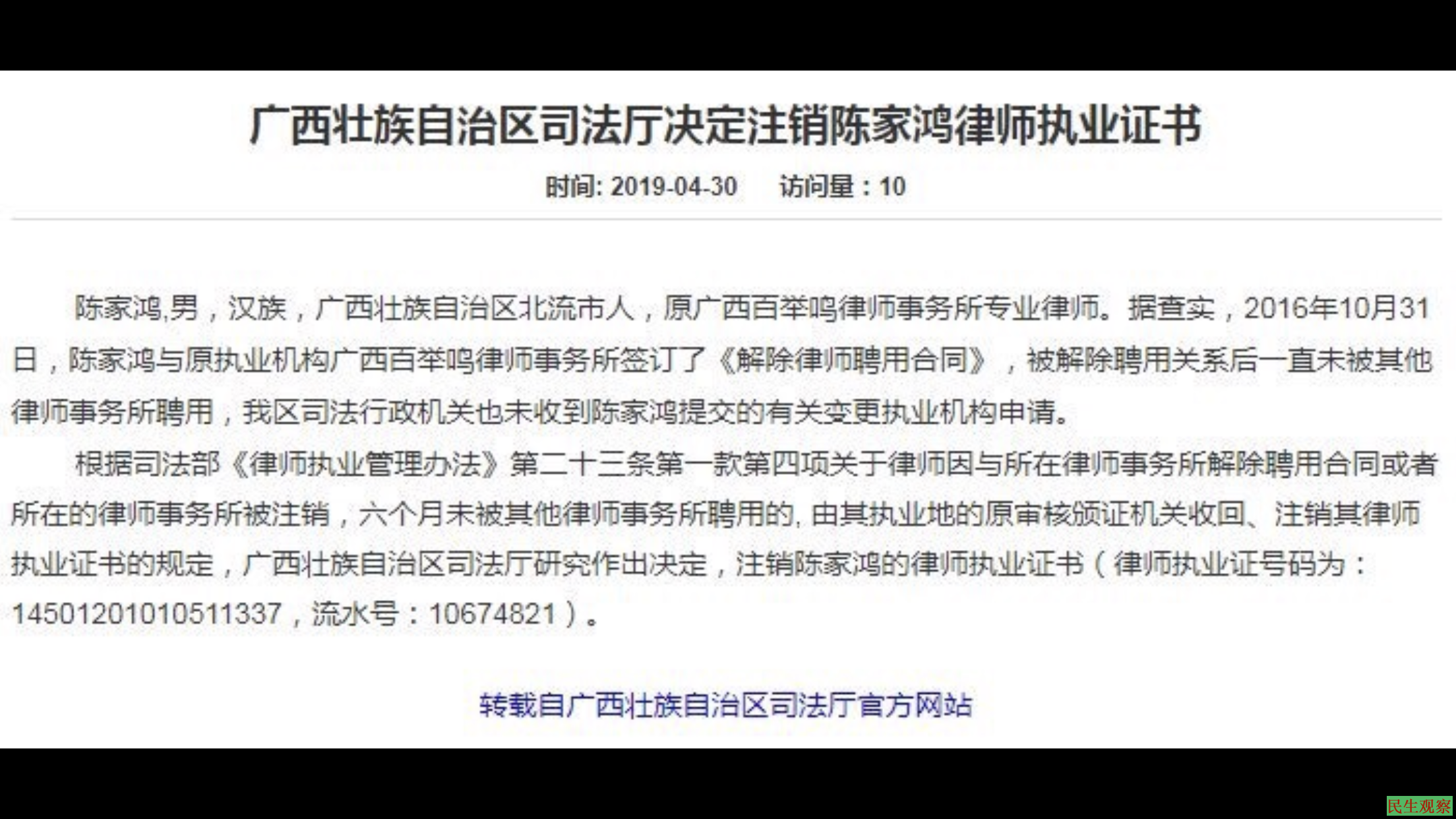 相关报道:广西陈家鸿律师疑因言被捕 https://aaa.aetdhfjgk.cf/a/lanmu4/2019/0429/18571.html