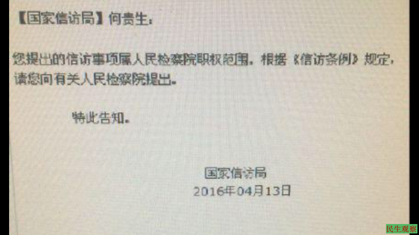 诉求人:何贵生 联系号:13705663489 二0一九年八月一日