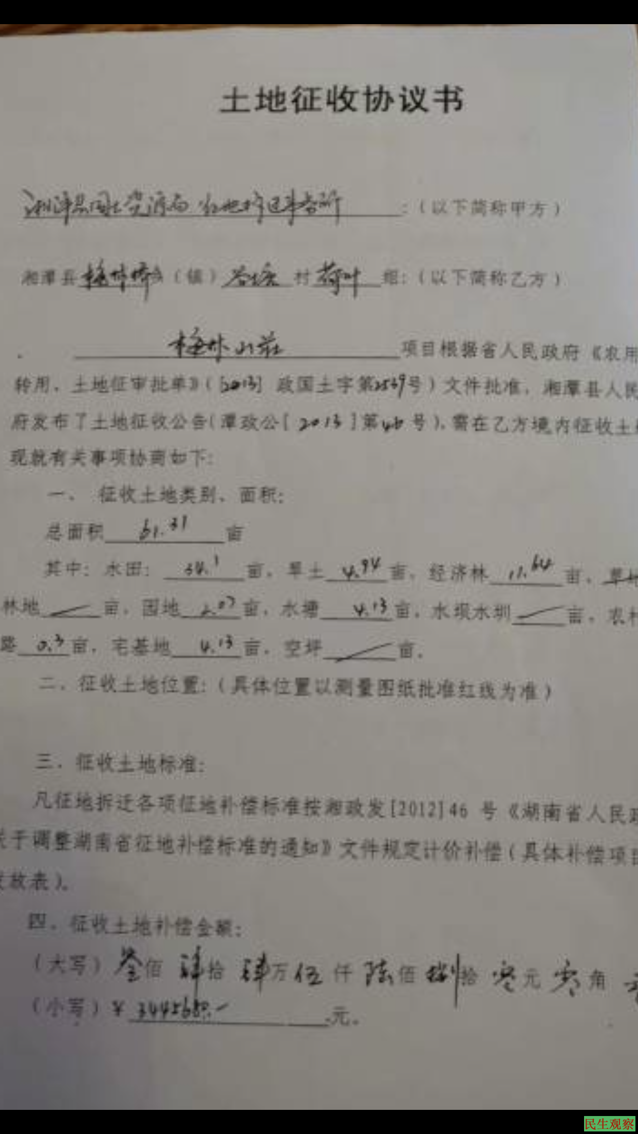 2013年12月31日,湘潭县国土资源局、梅林镇政府、谷塘村组委会签定《土地征收协议》并成交,占地面积为196.1445亩。2014年成交土地面积为88.6965亩。2019年成交土地面积为267.18亩。少披多征面积总和为552.025亩,余下的700多亩被无偿占用。