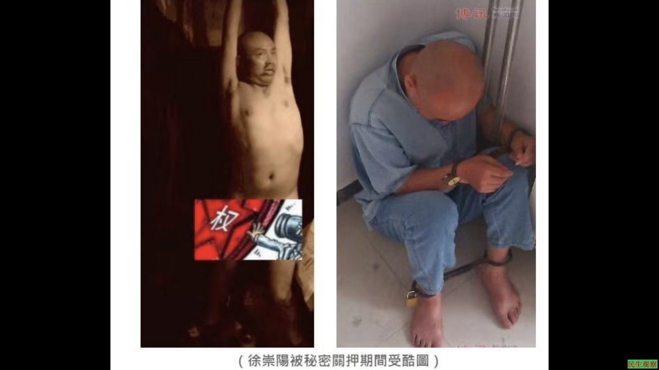 (二)酷刑视频,在谷歌网等多家国际媒体能看到。2013年1月5日,徐崇阳刑满释放后,把被酷刑的真相告诉媒体,傅政华指令北京市公安局丰台分局于2013年3月6日,以诽谤北京市公安局罪抓捕,以涉嫌重婚罪释放,被非法关押38天。