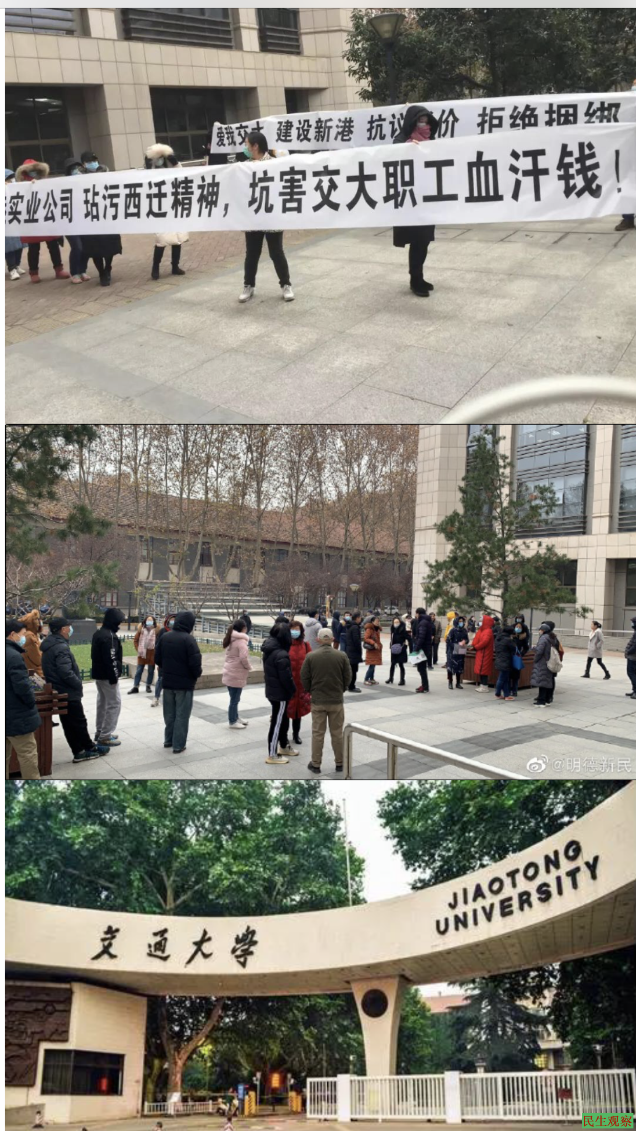 【民生观察2020年12月15日消息】12月7日,西安交通大学教职工因买房价格在兴庆校区主楼拉横幅维权的视频在网上流传。