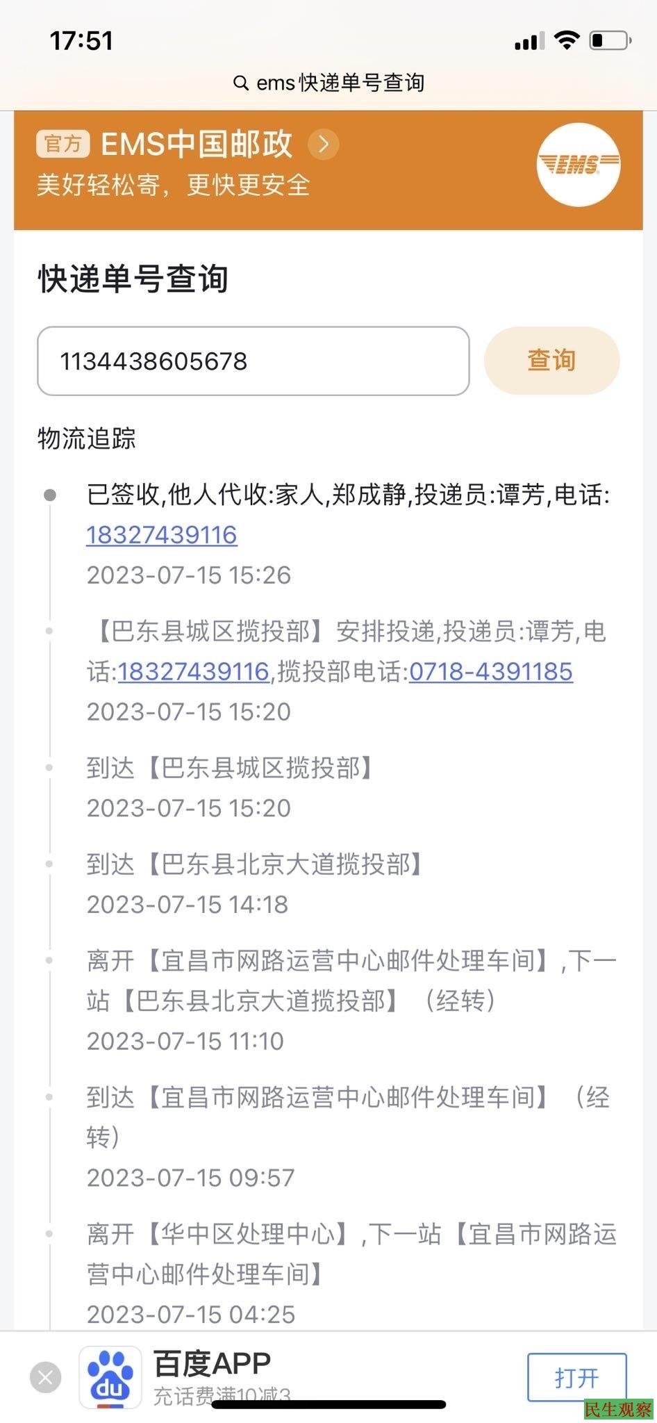 2023年7月14日,就湖北省巴东县公安局限制其办理护照的违法行为,李文足向巴东县人民法院邮寄了起诉书。7月15日,中国邮政快递显示已经签收。