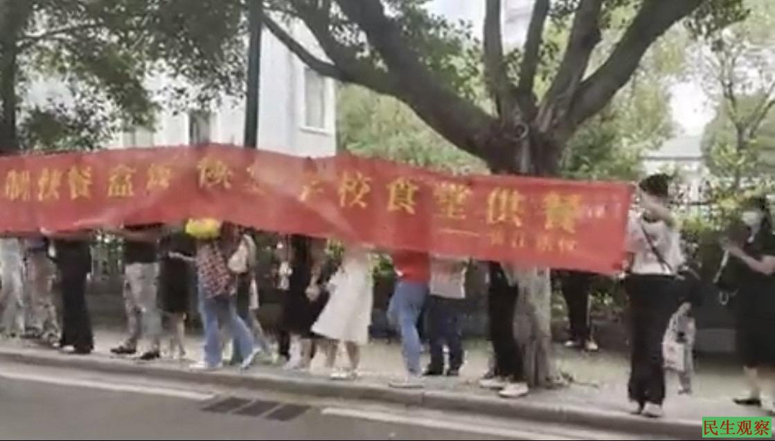 【民生观察2023年9月7日消息】2023年9月4日,江西省赣州市蓉江新区,家长上街抗议中央食堂为全区学校统一配送“预制菜”,要求恢复学校食堂。后续,各学校陆续表示不再通过中央厨房配送午餐。