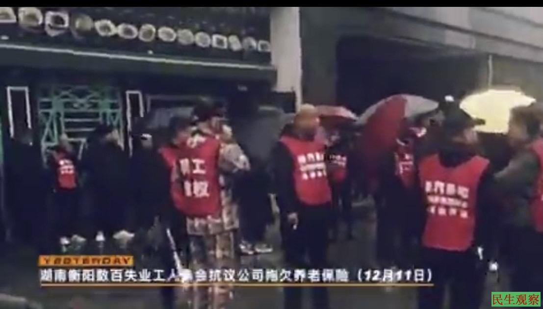 【民生观察2023年12月14日消息】近日,数百名失业工人来到湖南省衡阳市汽车运输集团有限公司总部,集会抗议公司拖欠养老保险及工人失业赔偿金。
