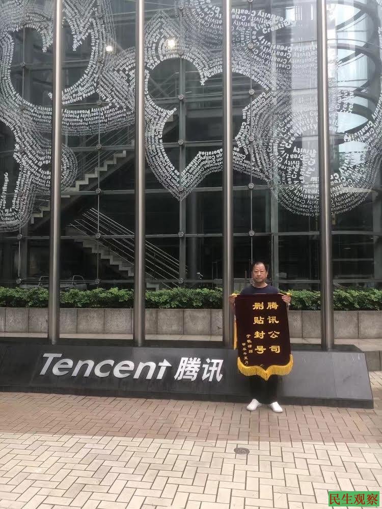 【民生观察2024年5月5日消息】近日,山东晓临律师事务所主任于凯律师到腾讯公司送锦旗抗封号。此前,于凯律师一个视频号、三个公众号先后被腾讯公司永久封禁,致信腾讯总部无果;后于凯律师将腾讯告上法庭,并于今年3月提交了网上诉讼,但南山法院既不立案又不出具书面裁定书,彻底摆烂。于是,于凯律师只好亲自来到深圳腾讯总部送旌旗抗议封号。