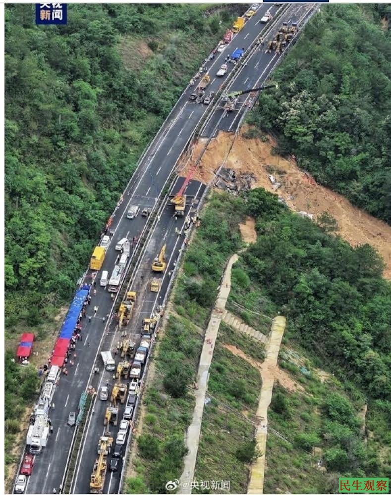 另外,有知情人士在网上曝光了梅陇高速坍塌的真相。
