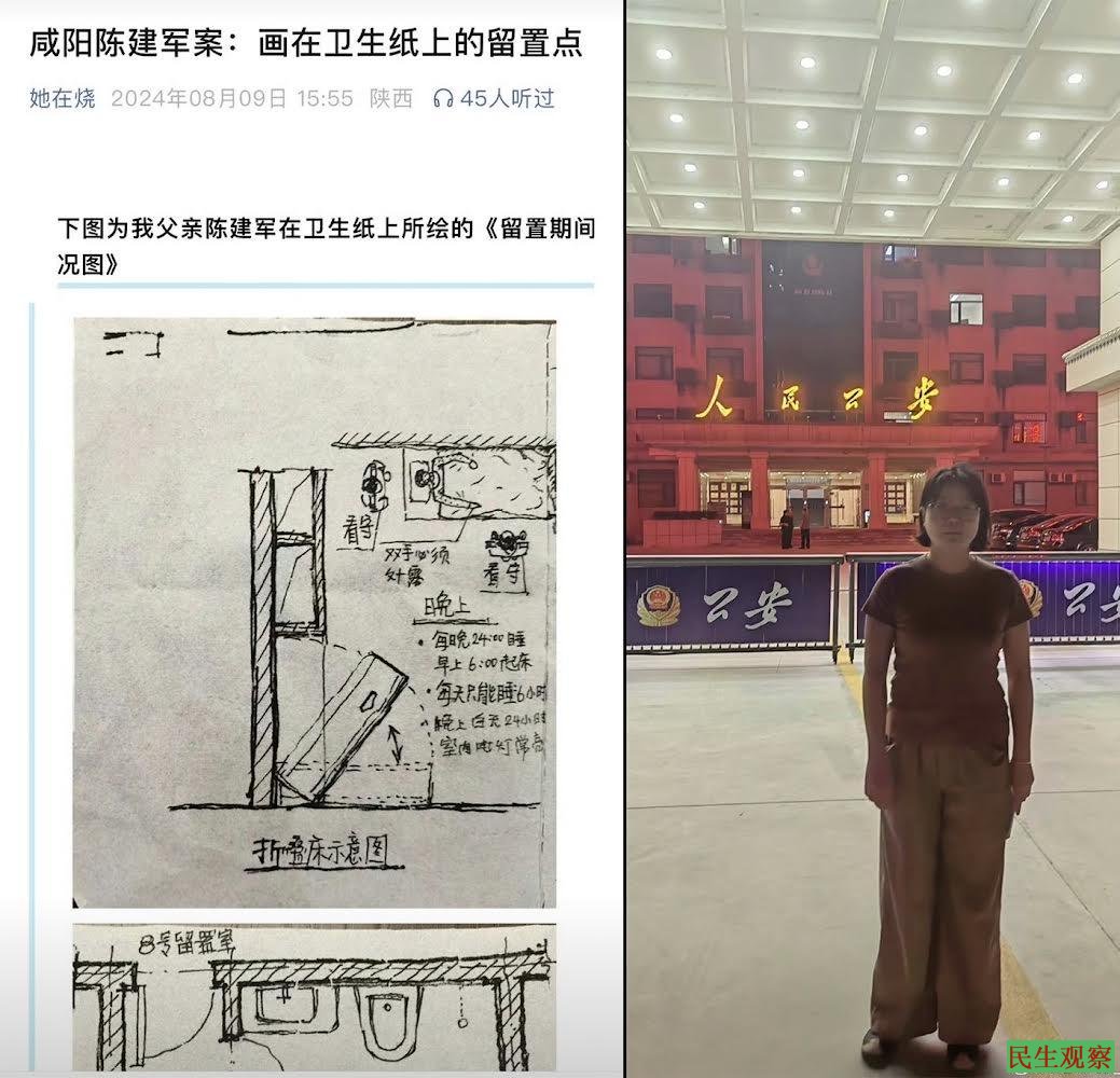 【民生观察2024年8月14日消息】2024年8月12日,陕西咸阳。网名“她在烧Fool”(陈璐)发贴称,她的父亲曾担任咸阳市建筑设计研究院副院长,2022年被当地市监委以受贿为由留置关押,但“她在烧Fool”认为当局的指控不实,母亲因无法忍受非法取证而跳楼自杀,自己在网上喊冤,被警察以涉嫌寻衅滋事传唤。