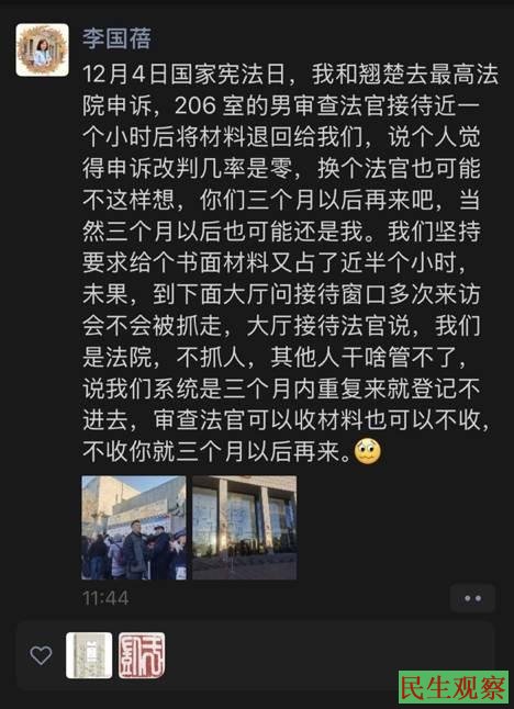 李国蓓律师和李翘楚去最高法院提出申诉状