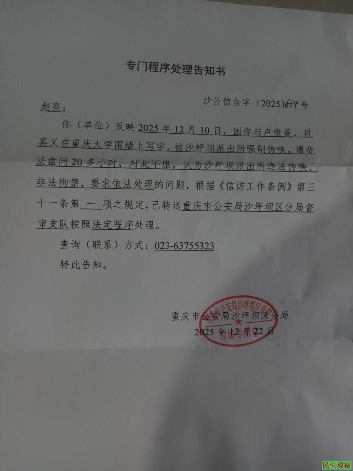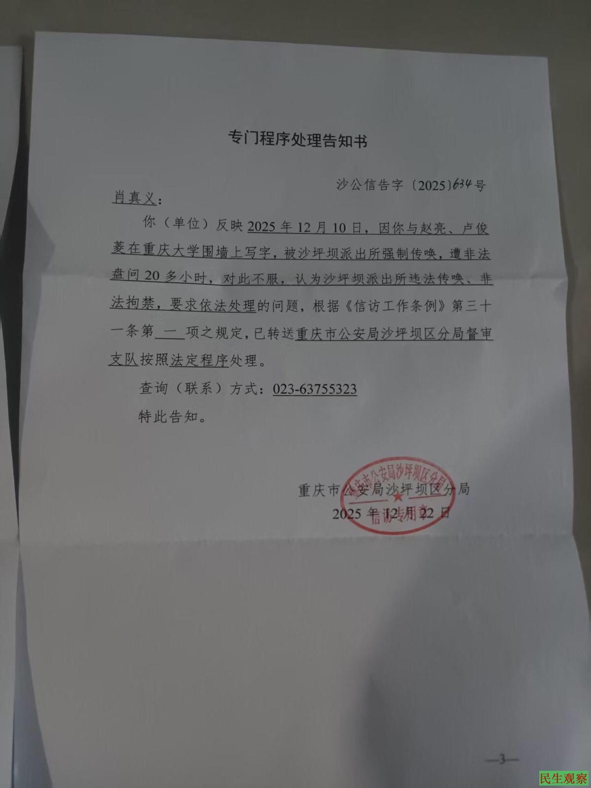 大家好。今天我站在这里,不是为了博取同情,而是为了撕开一张“合法执法”的画皮,让大家看看沙坪坝派出所是如何把法律当儿戏,把公民当违法犯罪分子的!