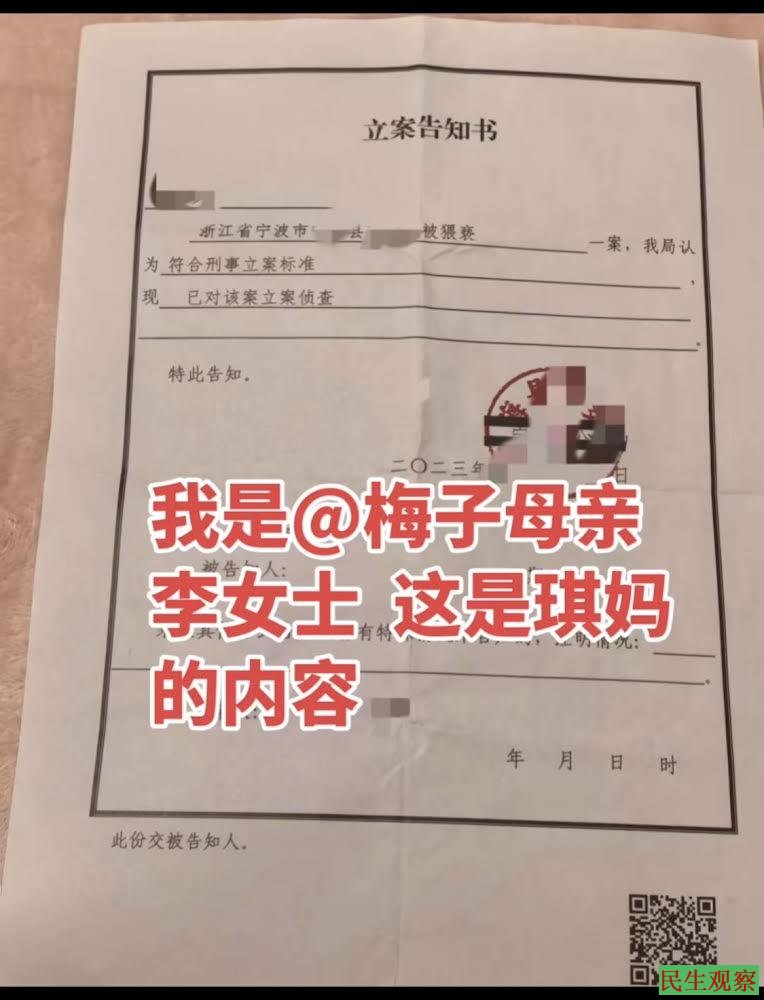 同月,博主“宁海四岁琪琪的妈妈”选择报警立案,并获得立案回执单。