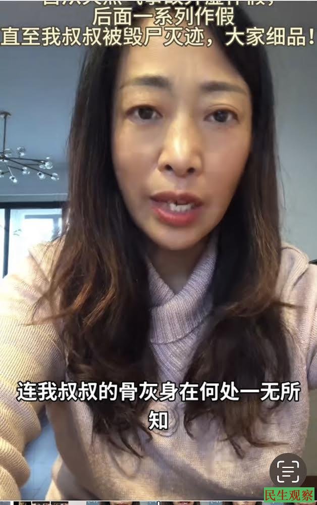 更让朱培娟绝望的是,在她被限制人身自由,在所有亲属都毫不知情的情况下,叔叔朱中云的遗体,被擅自火化,这分明是毁尸灭迹。
