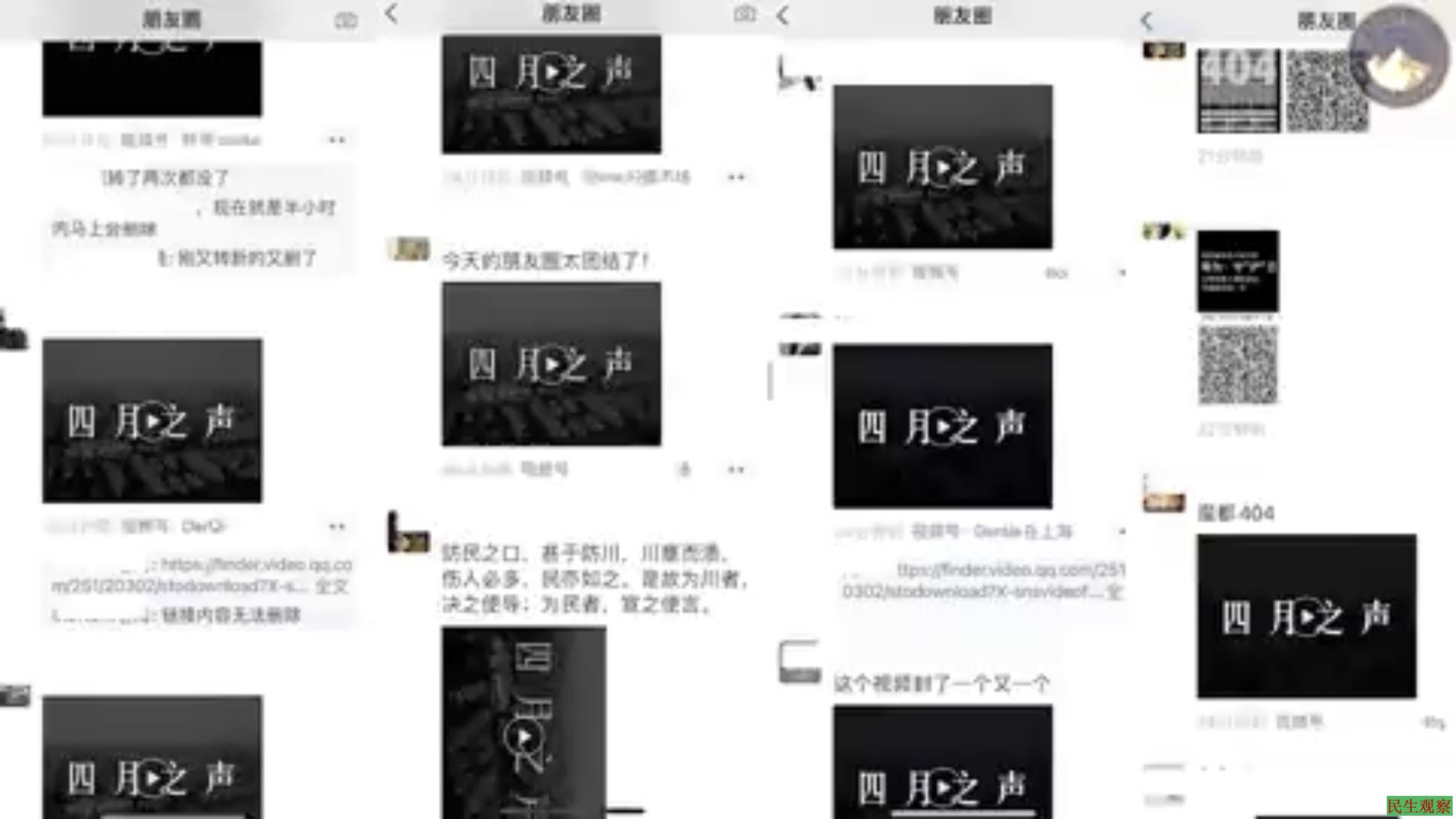 文章作者如此描述中国网民转发《四月之声》短片的“盛况”,但这则短片最终还是被全网封杀,并且连这篇质问的文章也遭屏蔽。