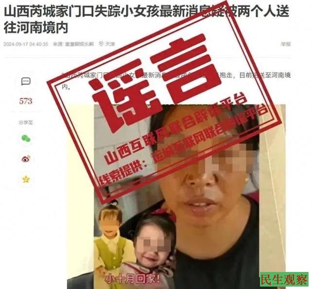 与此同时,网上一则“山西芮城家门口失踪小女孩最新消息,疑被两个人送往河南境内”的消息近日在网络广泛流传。