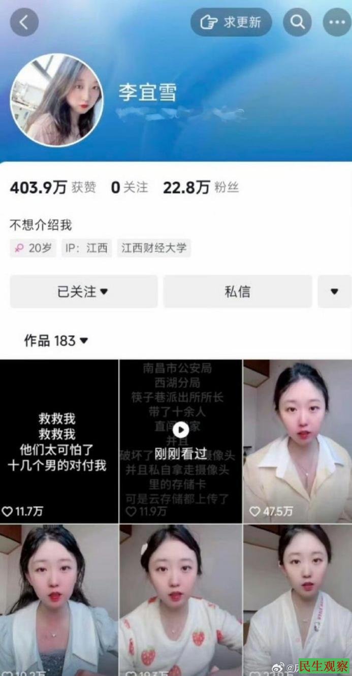 7、“李宜雪与外界失去联系”?南昌当地通报:一直在家中