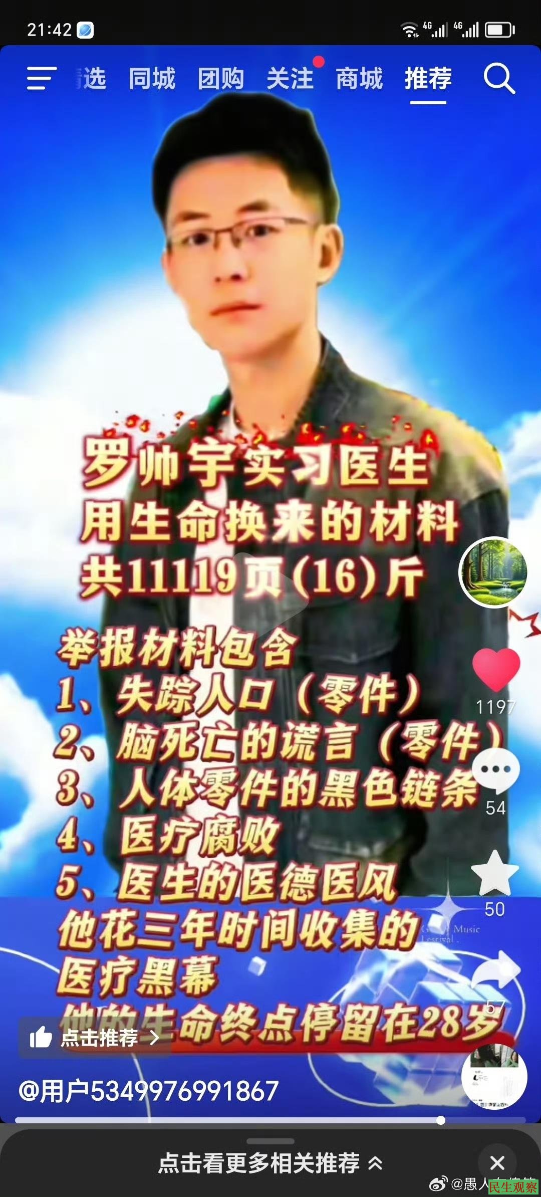 @归去来兮妤:强烈要求调查医院的器官贩卖的黑色产业链!严厉打击!重启罗帅宇案件调查!